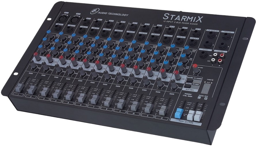 Canais Mic e Line: canal 01 e 02: MIC – Conector XLR / LINE – Conector 1/4″ TRS (P10) mono