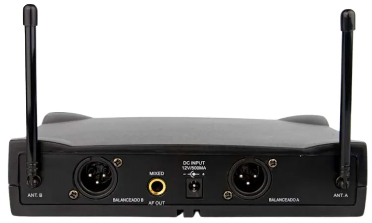 - Microfone: Frequência 1: 685.8MHz – 690.3MHz / Frequência 2: 687.3MHz – 694.8MHz