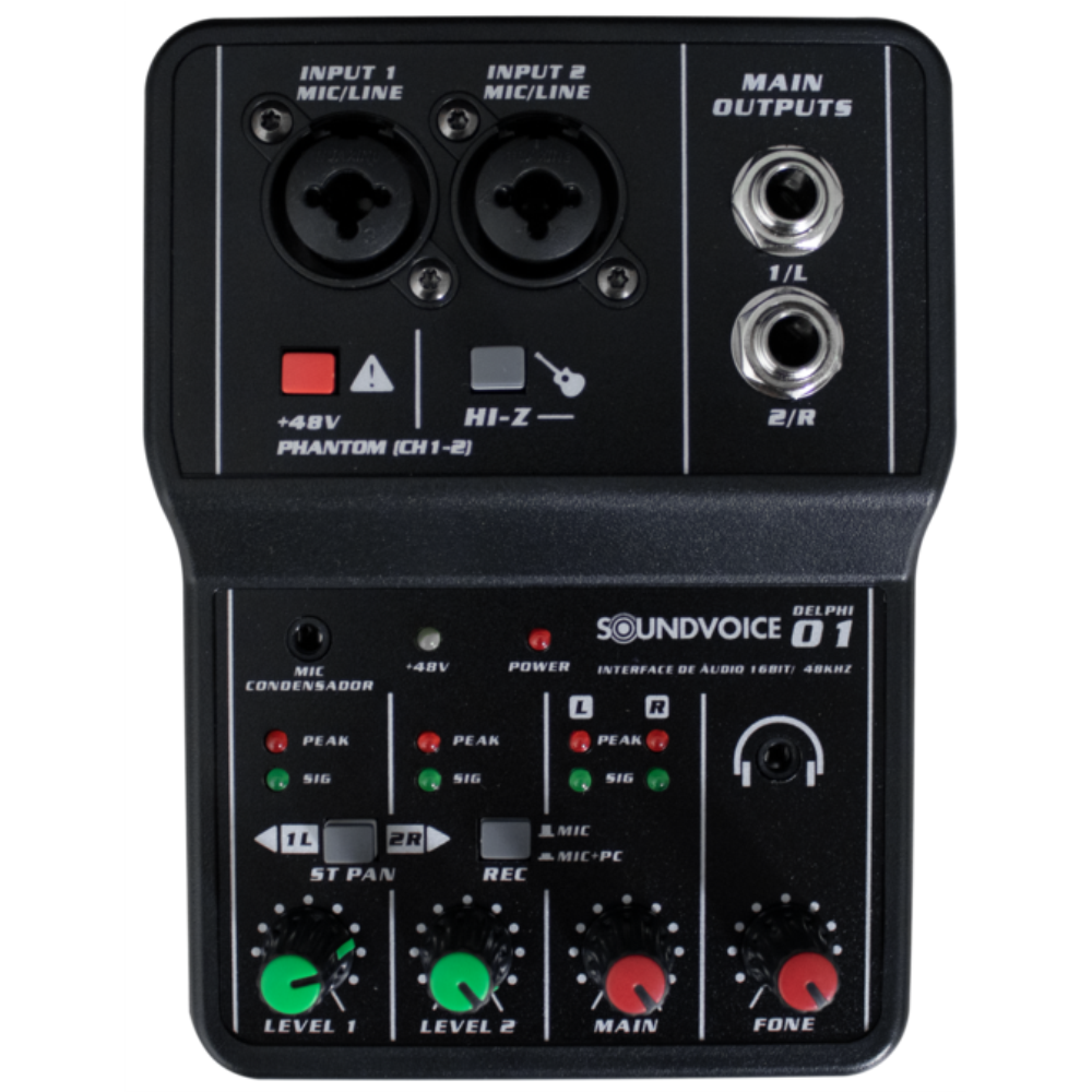 DELPHI-01 é a mesa de som compacta ideal para quem busca praticidade sem abrir mão da qualidade. Com 2 entradas combo e ajuste de volume por canal, ela oferece total controle sobre o som. A entrada para mic condensador e o phantom power garantem compatibilidade com microfones de alta performance, enquanto a gravação em multipista permite criar produções completas. A conexão USB-B facilita a integração com seu computador, e o interruptor mono/estéreo oferece flexibilidade para diferentes configurações.