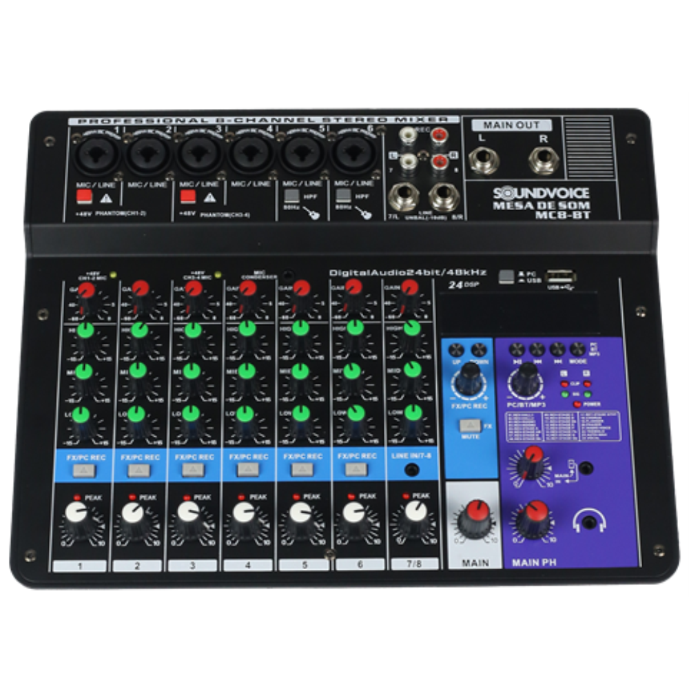 8 canais combo XLR e de linha P-10 (6 mono + 1 estereo)
